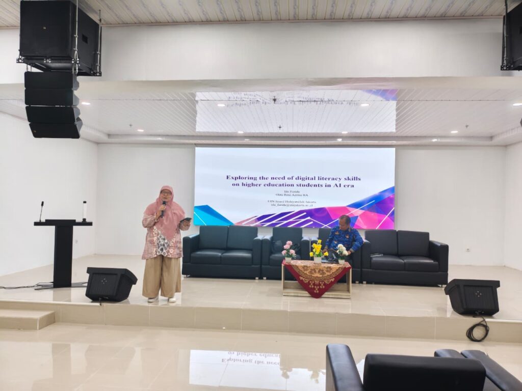 Beliau menjelaskan bahwa literasi digital tidak sekadar kemampuan teknis menggunakan perangkat, tetapi juga mencakup keterampilan untuk mengakses, mengevaluasi, mengintegrasikan, dan menciptakan informasi secara bertanggung jawab. Dalam konteks mahasiswa humaniora, AI dapat mempercepat proses belajar, tetapi juga berisiko menumbuhkan budaya instan jika tidak dibarengi dengan keterampilan berpikir kritis. Oleh karena itu, mahasiswa perlu memahami potensi plagiarisme, bias informasi, dan pentingnya melakukan verifikasi terhadap sumber yang direkomendasikan AI.